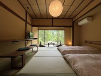 館内いたる所に、季節を感じる花木や装飾が心和ませる。到着時には、抹茶で一服できる。エレベーターの中まで畳を敷いてるなど、心と体の両方で“和”を感じられる宿