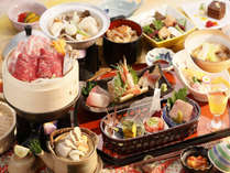 | 【お料理ランクUP】極上の料理プラン!特選いろり会席<A4前沢牛+活き鮑海鮮焼き> |