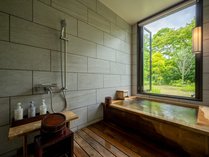 全20の客室すべてに源泉かけ流しの半露天風呂とテラス付き