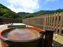 温泉は自家源泉かけ流し100%!2つの貸切露天風呂と2つの貸切内湯はいつでも何回でも貸切で!