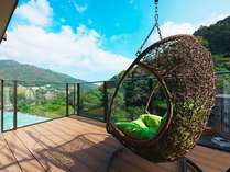 テラス付のお部屋は湯河原の緑を眺め、温泉を贅沢に愉しむ滞在が可能。