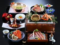 | 【地物松葉の花咲くカニ刺し付き♪】カニ鍋&焼きガニ&茹でカニ&活鮑&但馬牛ステ−キ付き★冬爛漫 |
