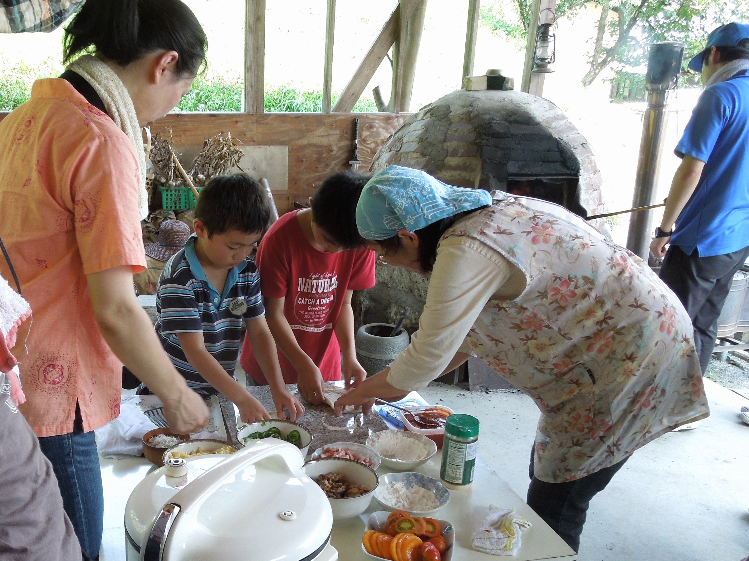 - 山奥で出来る本格ピザ焼き体験!は、家族でグループでの体験はおかげさまで大好評のピザです。手づくりの石窯と季節に合わせた旬の具材で、丹精込めて育てた畑の無農薬の作物を使います。石窯ピザは別格です。