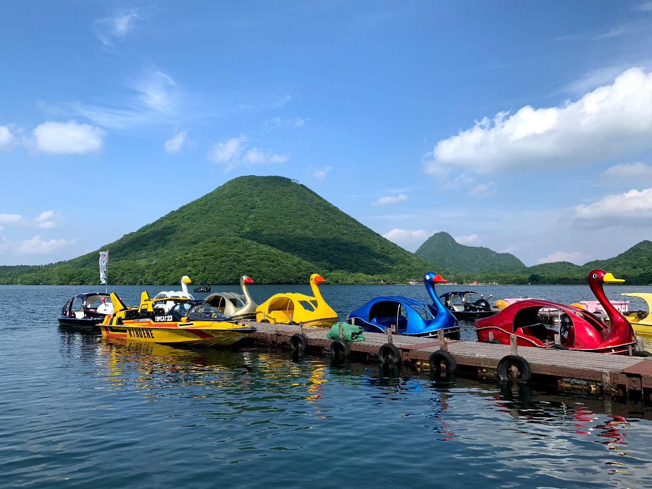 - カラフルなスワンやてんとう虫などのペダルボートで榛名湖を30分周遊♪ 時間や季節ごとに色を変える美しい榛名湖でリフレッシュ♪ 伊香保温泉旅行からの観光にもおすすめ!