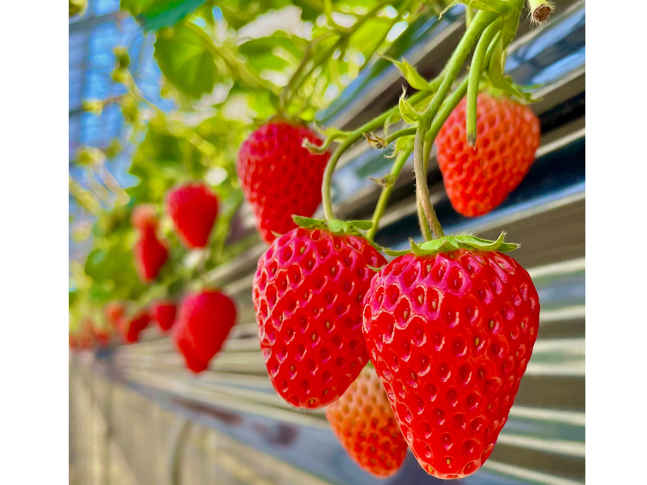 - ◆2024年12月オープンしたばかりなのでとっても綺麗です♪ ◆高設栽培だから屈まずにいちご狩りが出来ます♪ ◆水素水を使った栽培方法であま〜い苺♪