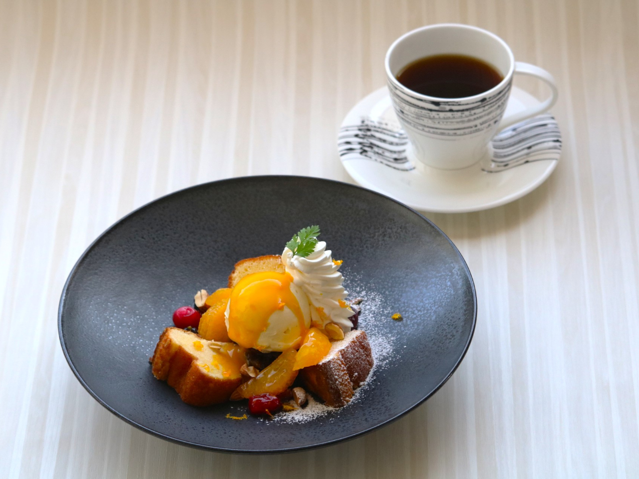 - 「この一皿に、パティシエの“ありがとう”を。」― 想いを重ねた、ブランデーケーキ ― 「若手パティシエが、磨いた技と想いを込めて。」今だけ味わえる、アゼリア限定・大人のデザートプレート。