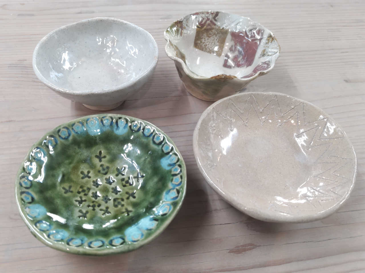 - 1名4950円(材料費、焼成費、税込)|1回2時間 *粘土2Kgで自由に成形 *別日程、別料金で、仕上げまでの工程を全体験 *初心者歓迎!少人数制でアットホーム