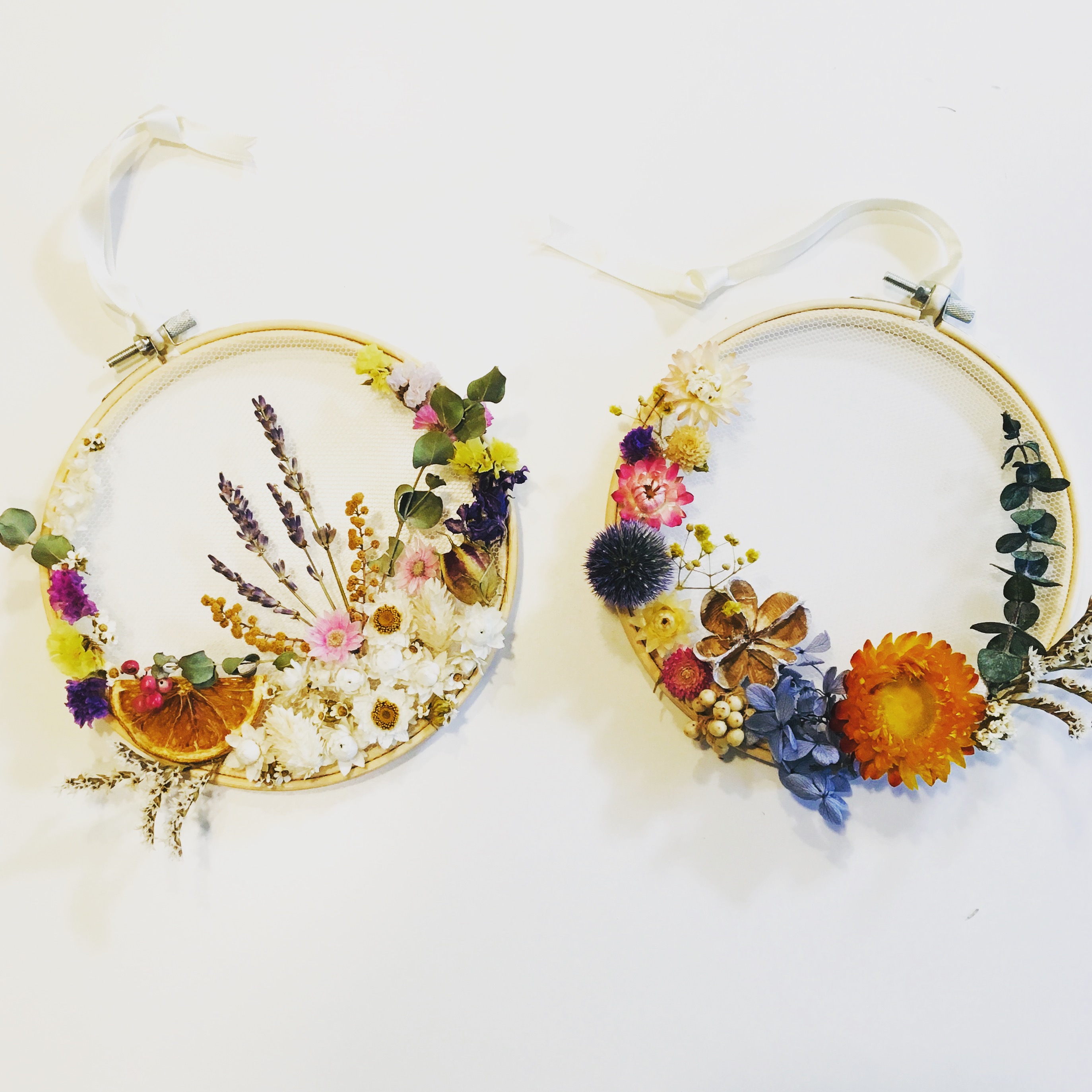 - カレイドフレーム(刺繍枠)にドライフラワーやプリザーブドフラワーを飾りつけた新しいフラワーアレンジです。自由な発想でオリジナルを作ってみませんか。