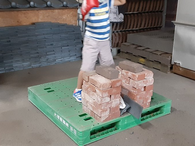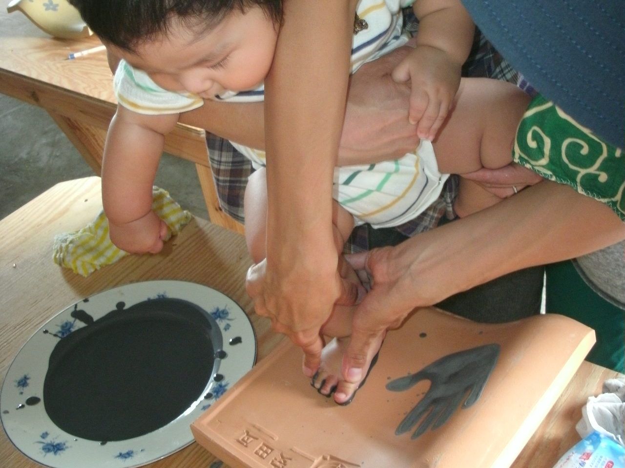 - 30cm角の本物の瓦へ釉薬を用いて絵付けを行う体験です。 好きな文字や絵を書いたり、お子様の成長の記念に足形・手形を押される方もいます。 思い出の作品を作りましょう♪