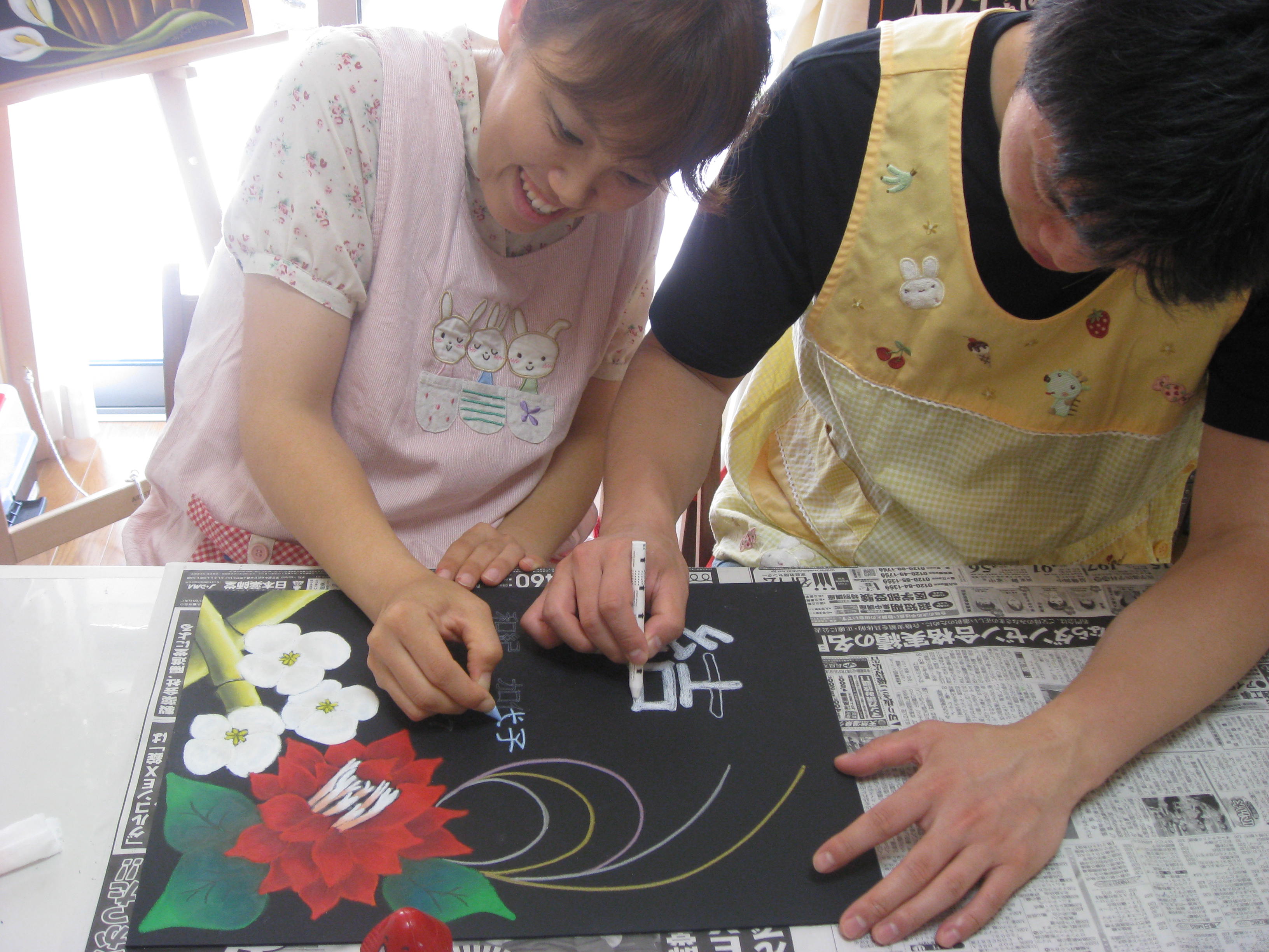 - 伝統的漆技法を応用し、お肌に優しい代用漆を使用して、お好みの漆の絵付けをします。 漆材料費込みで独自のオリジナルな額絵などを制作します。基本の板など以外に、別売りの器などでの絵付けも楽しいです。
