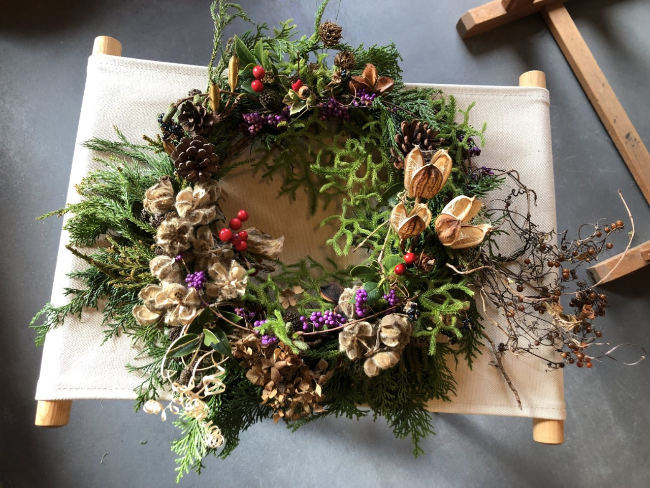 - 十津川村の自然素材を使用したリース製作のワークショップです。