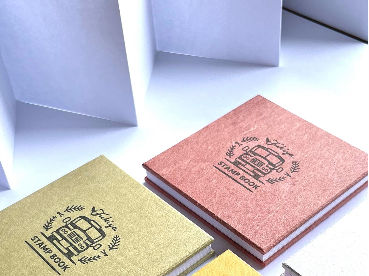 - ●吹屋の伝統的な顔料「ベンガラ」をすき込んだ手漉き和紙を表紙に使います ●旅の思い出を集めて広げて眺められるスタンプ帳を作りましょう