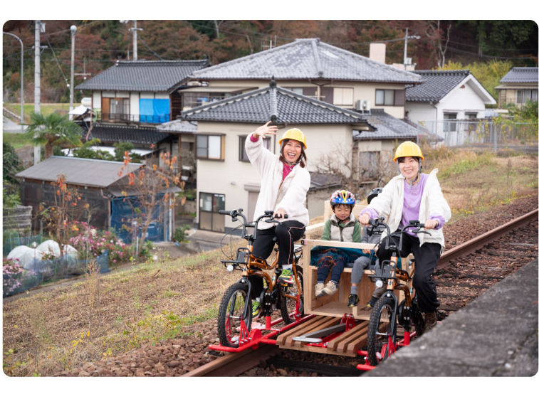 - 2018年3月で廃線となった旧三江線のうち、750メートル区間の鉄路を使った、 新しいアトラクションが誕生しました!その名も「レールマウンテンバイク」☆彡