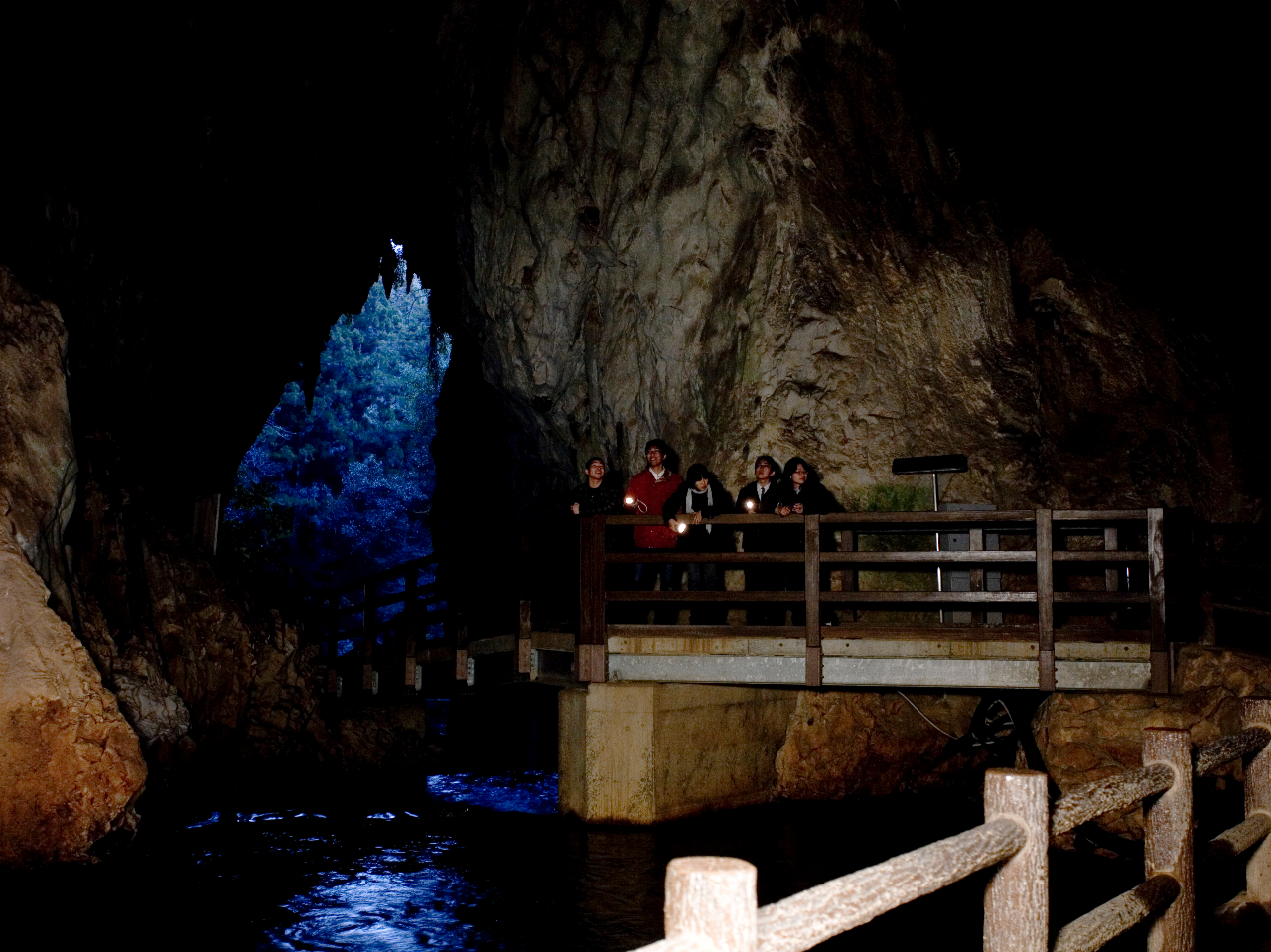 - 懐中電灯の光だけを頼りに進む、秋芳洞の特別探検ツアー。暗闇の中で地球の鼓動と自然の神秘を体感できます。