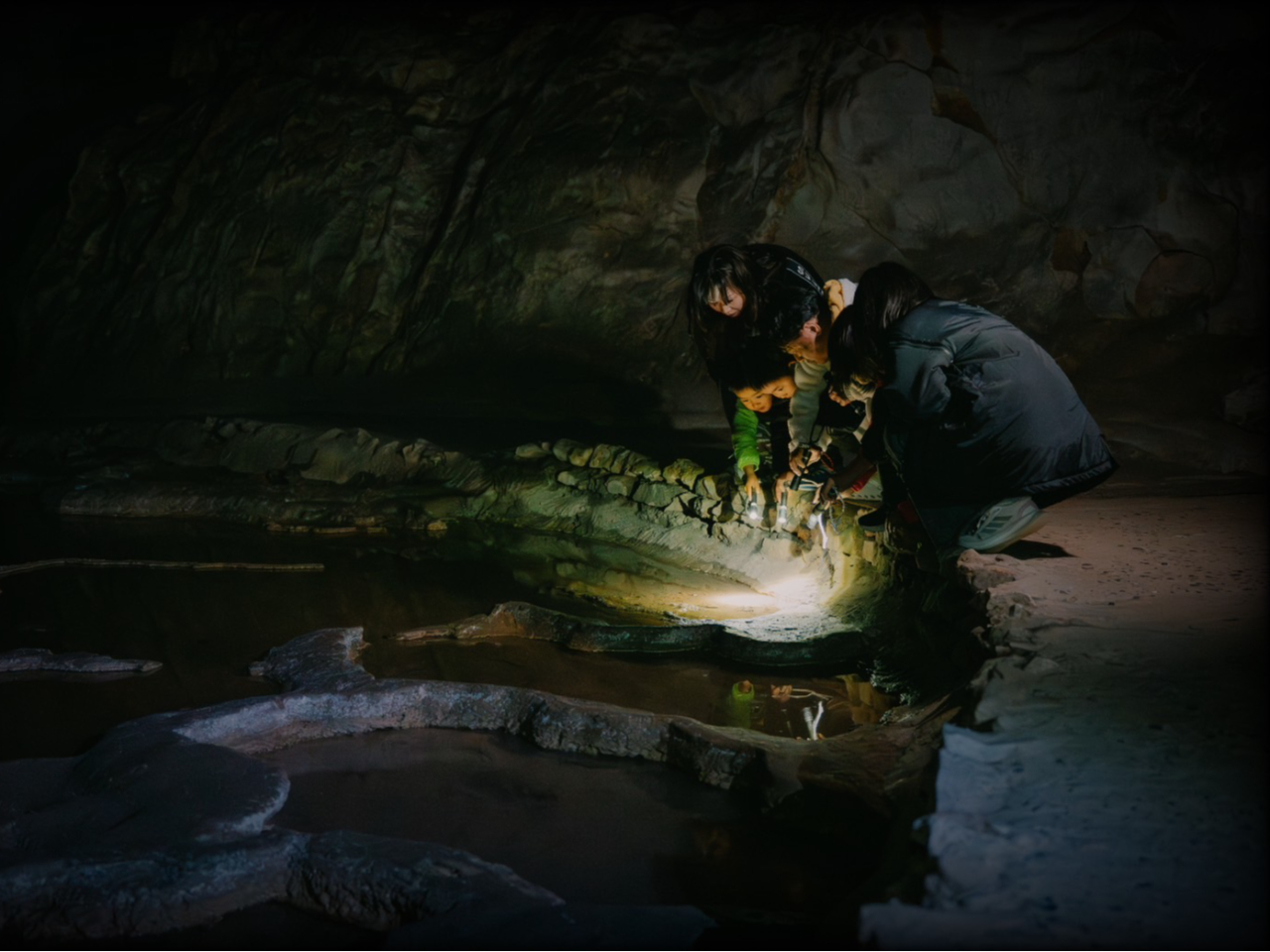 - 懐中電灯の光だけを頼りに進む、秋芳洞の特別探検ツアー。暗闇の中で地球の鼓動と自然の神秘を体験できます。