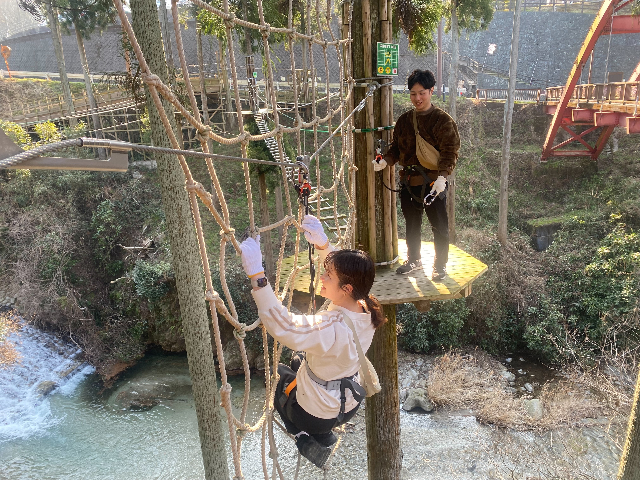 - 大人も子供も夢中になれる、本格的なアスレチックコース! ジップラインが全部で7本、アクティビティは32種類! 大明神川を越えるジップライン、アクティビティはスリル満点!!