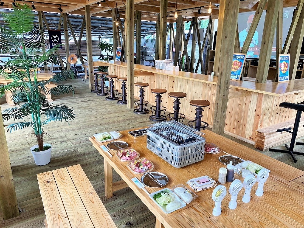- 食材、飲み物だけで手軽にBBQが楽しめます! 調理器具も無料でご利用できます。始めるまでの準備や後片付けも一切不要です。 100名収容可!職場の打ち上げ等にもご利用できます。