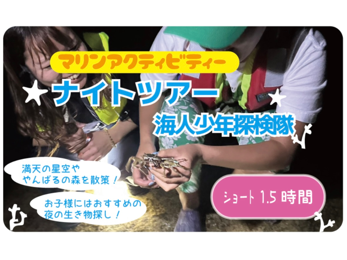 - 日中にはなかなか見れない夜の生き物を観察できます!やってみたいけど夜の海は怖いなと思う方もスタッフがしっかりサポートするので安心!あなたは何種類の生き物を見つけられるかな☆