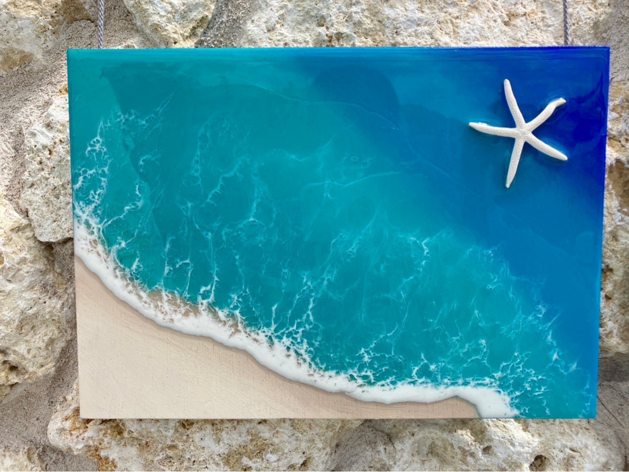 【話題のレジンアート体験!A4パネル】石垣島の海!波が作れます。雨天も安心♪石垣島の中心商店街ユーグレナモールから徒歩10秒!