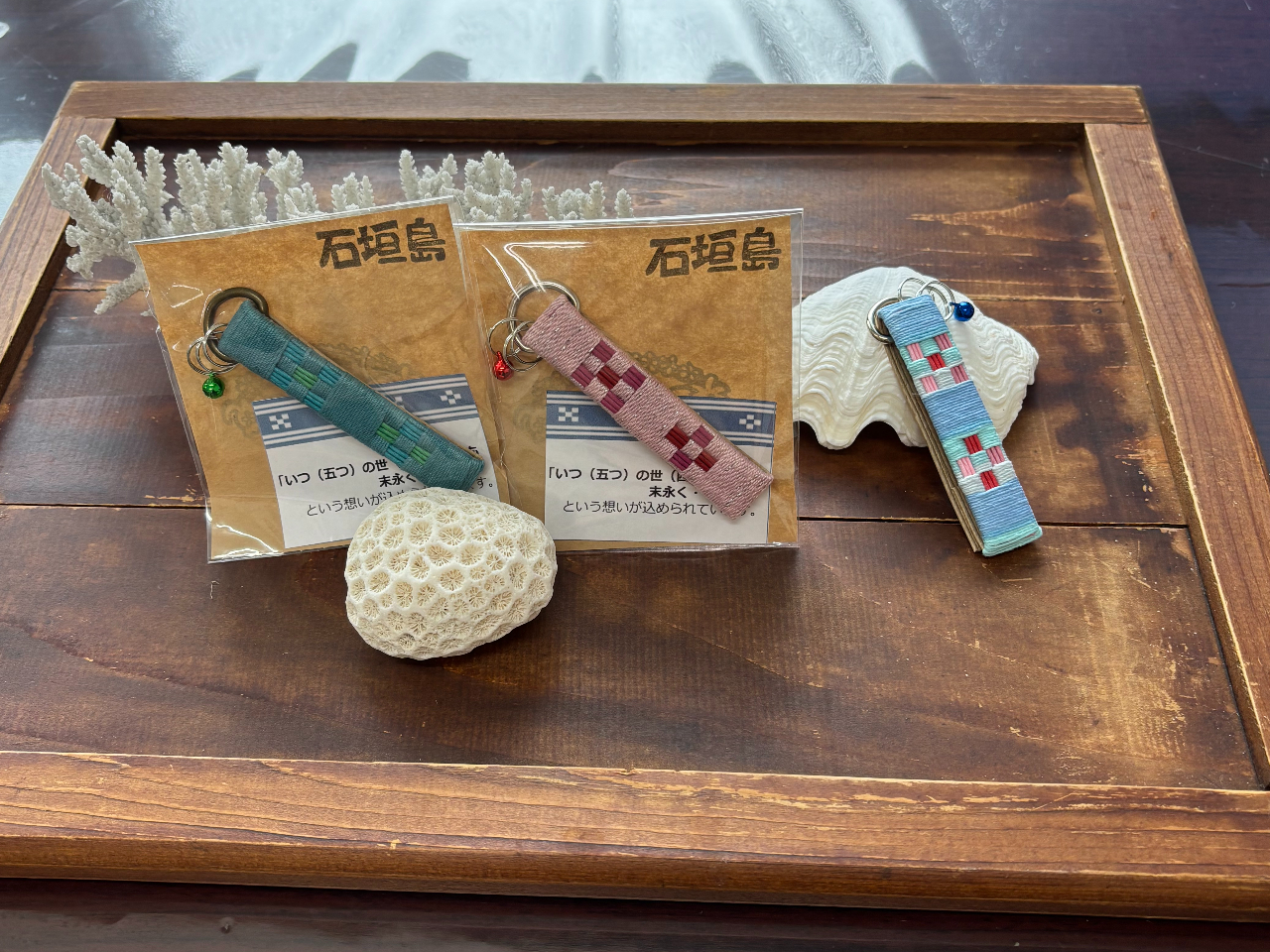 【沖縄県・石垣島】【15分〜30分】ミンサー柄キーホルダー作成体験 八重山の伝統的な文様をいかしたキーホルダ 「いつ(五)の世(四)までも末永く」といった思いがこめられています