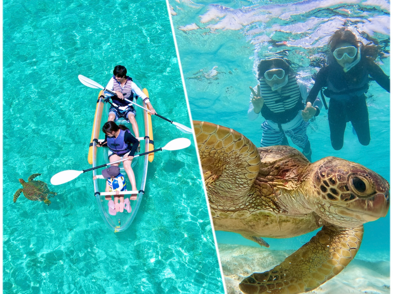 【ウミガメ遭遇率99.9%!】クリアカヤック or クリアサップ《ドローン撮影無料》-1時間プラン- 小さいお子様連れのファミリーにおすすめ♪