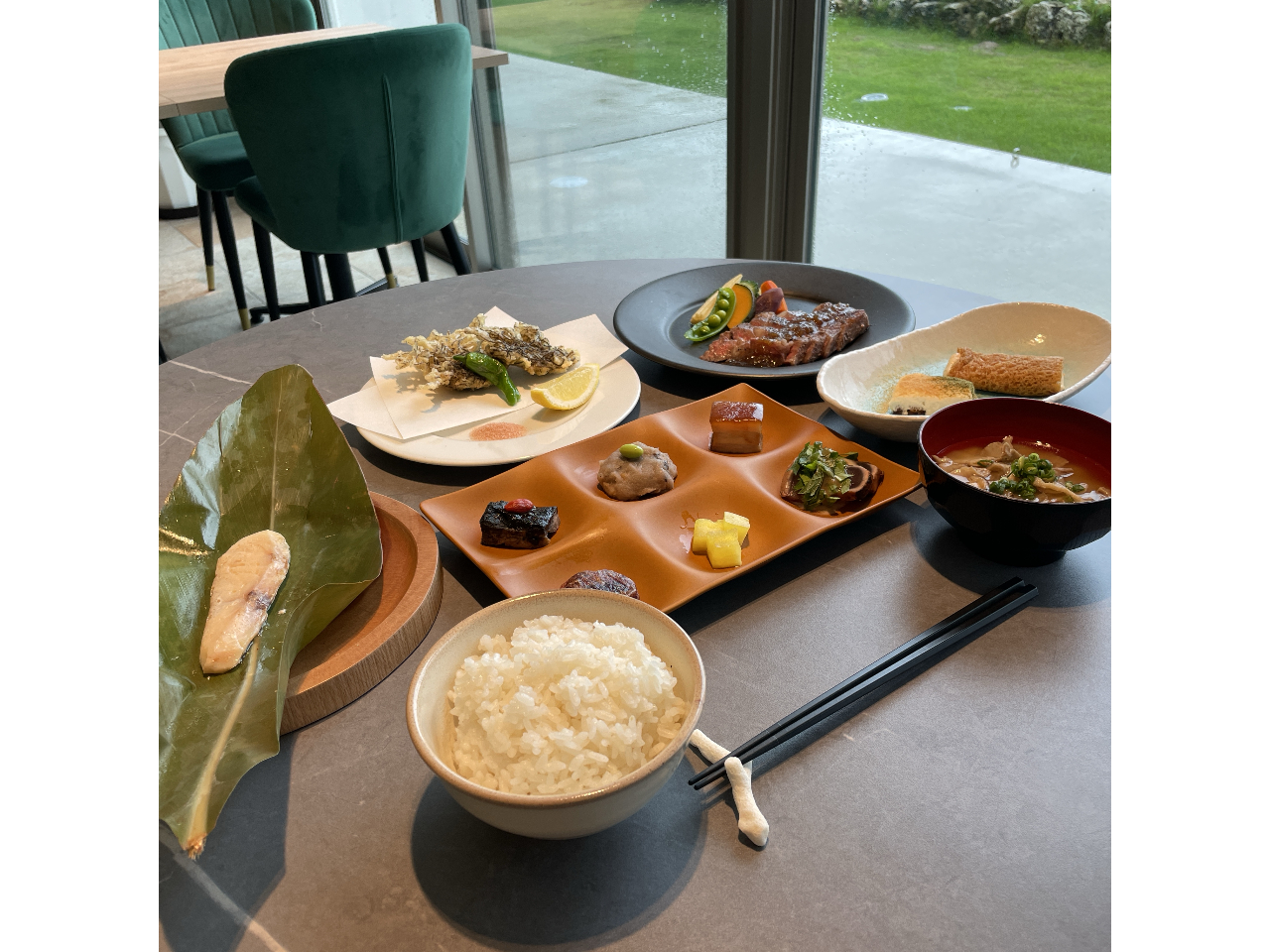 - 沖縄県産「なんじょう和牛」のステーキをメインに、温野菜、サラダ・本日の一品(日替わり)御膳をご用意いたしました。
