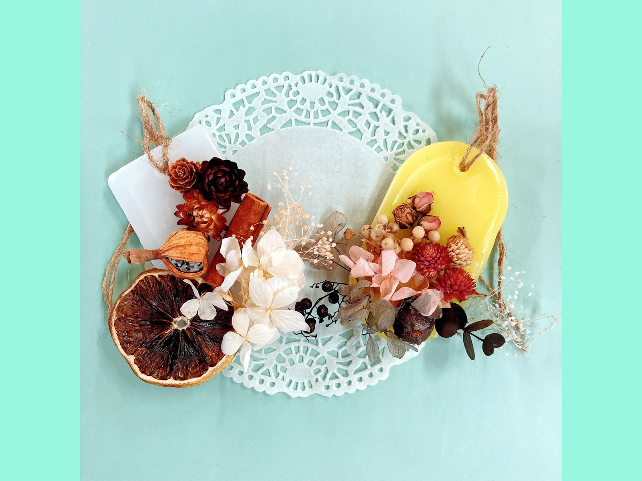 【宜野湾/アロマ香るサシェ 2個作成できる】<雨の日OK!ワンドリンク付き>旅の途中に一息つきながらお土産や贈り物にも♪プリザやドライフラワーで可愛くデコレーション♪一つだけのアロマサシェを作ろう!