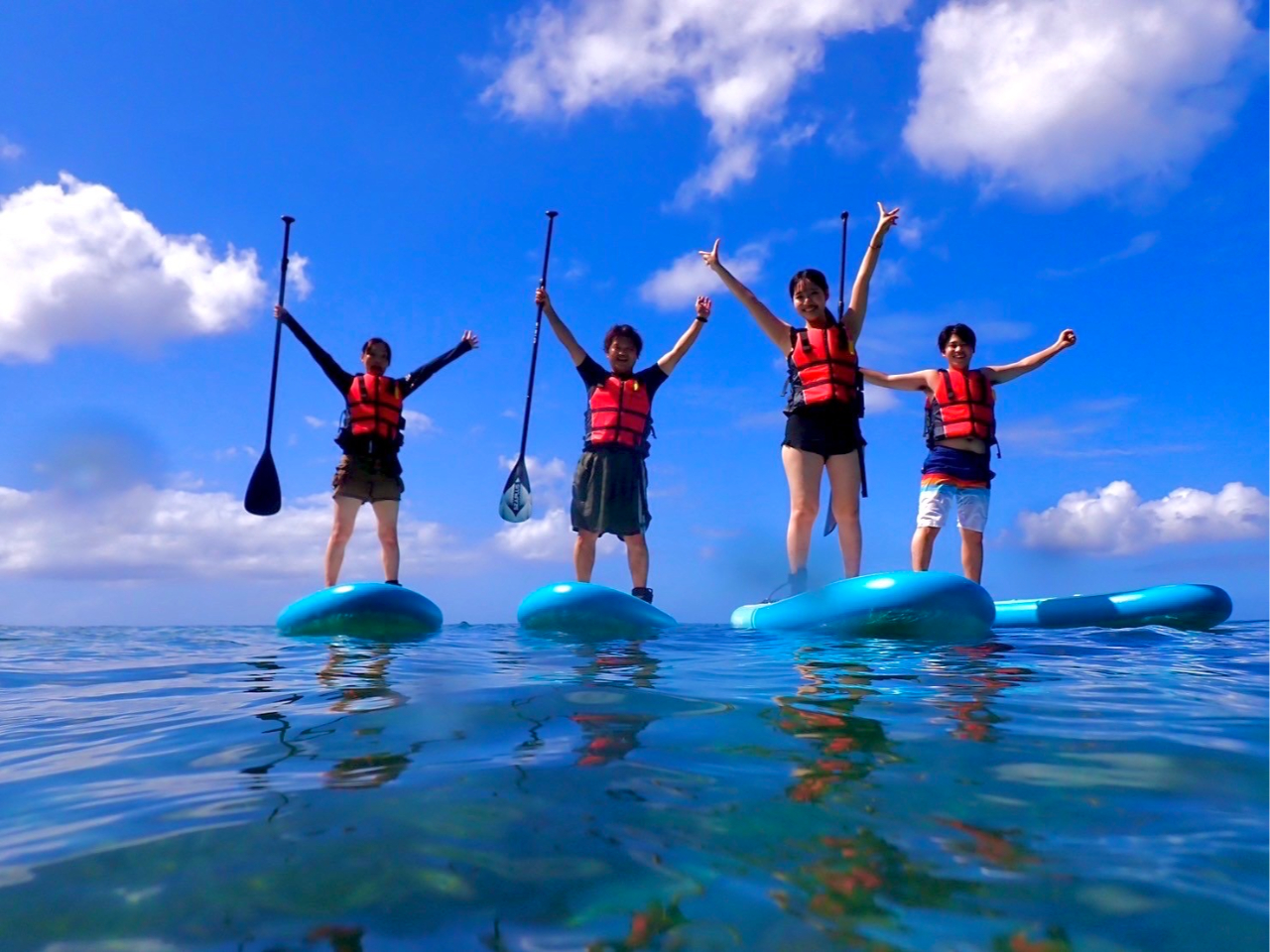 \宮古島の定番/ウミガメシュノーケル&サンセットSUPツアー|再チャレンジ無料保証|GoPro写真&動画無料|温水シャワー、ドライヤー完備|ファミリー・カップルおすすめ!