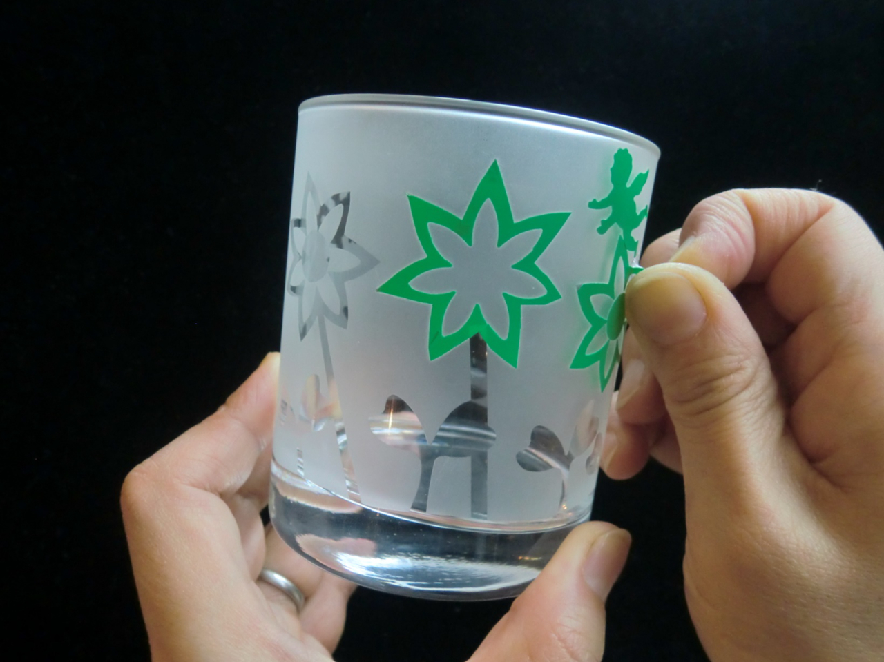 - 絵柄を切り抜いたシールをコップやジョッキ等に貼り、砂を吹き付けて曇りガラス状にします。 絵が苦手でも不器用さんでも・お子様からご年配の方でも・男女問わずどなたでも簡単に製作できます♪