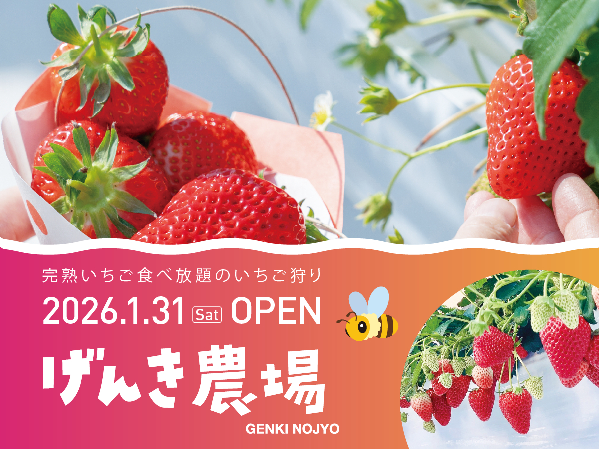 - 2026年シーズン 1月31日オープン! 埼玉農業大賞特別賞を受賞したげんき農場の完熟いちご食べ放題♪ 最大5品種の食べ比べをお楽しみください♪(あまりん、かおり野、恋みのり、紅ほっぺ、よつぼし)