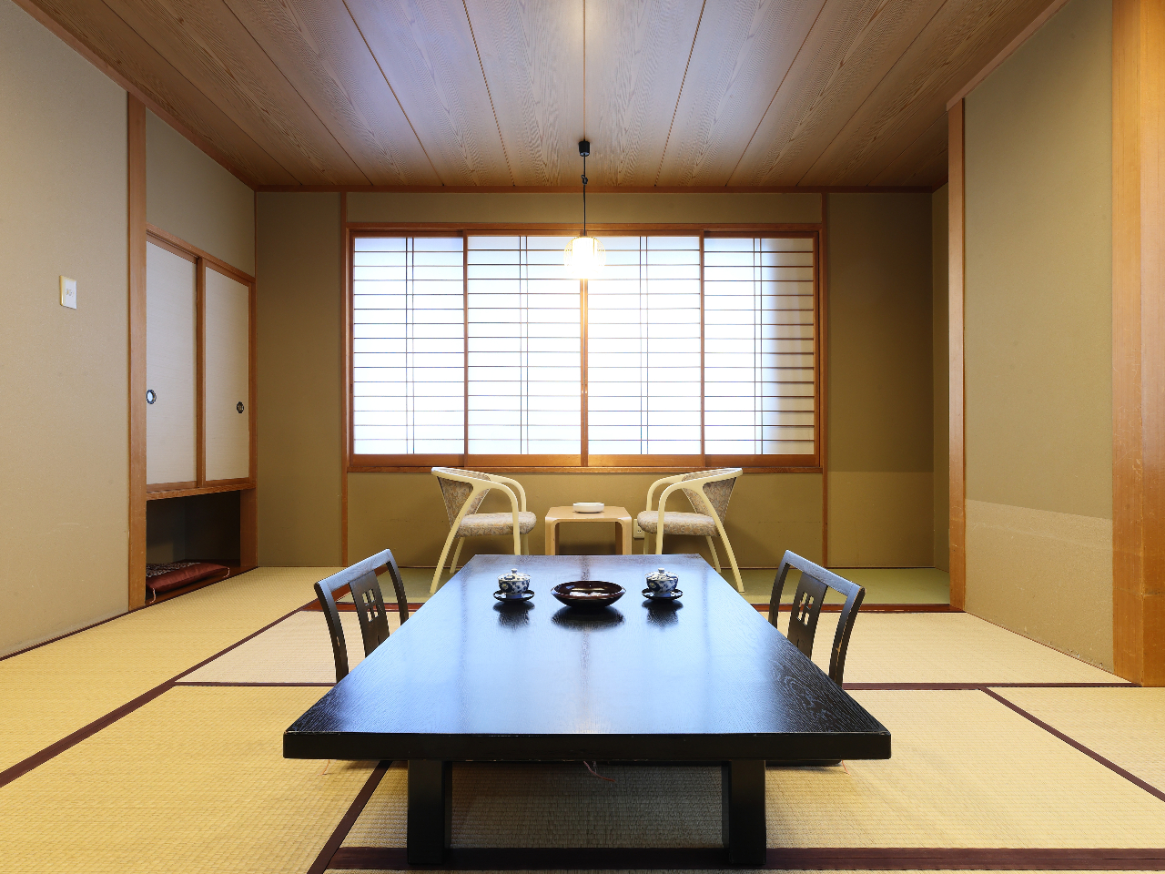 温泉街中心高台にある静かな和風旅館。温泉は宿泊者が多く混んでいる場合は利用できない場合があるので電話で確認を。