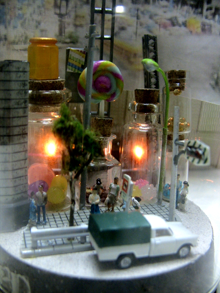 - ◎レトロなミニシーンを手作りで。直径8cm×高さ15cmのケースはガラス製