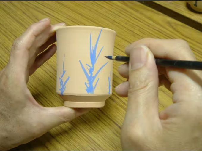 - 素焼きの湯呑に釉薬で自由に絵付けしていただきます。 ◆所要時間 約30分〜1時間 体験で描いたデザインが、1か月後には美しいブルーの柄となってお手元に届きます。