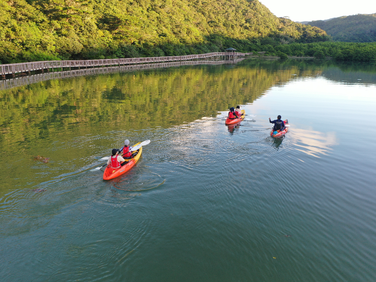 - ★マングローブ慶佐次川+波風を楽しむ海へ。両方のフィールドを楽しめる! ★他社よりも1ガイドが案内するカヌーの最大艇数を減らし、最大4艇まで ★年々人気が高まる慶佐次川!満足度UPのスタート時刻設定