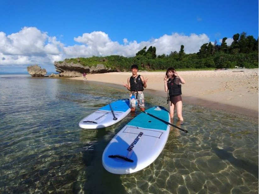 - 【沖縄本島・北部・瀬底島】綺麗な海の上でSUP体験たっぷり60分コース