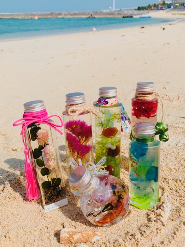 - ・室内だから<雨の日><暑い日>にピッタリ! ・瓶の中に詰めていくだけ!沖縄ならではのパーツも豊富に取り揃えております! ・所要時間1時間で当日持ち帰り!最後は箱に入れてお渡しするので、持ち帰りも安心