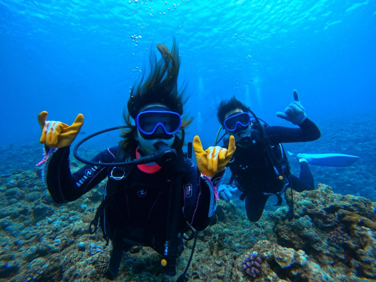 - インストラクター1人につき体験ダイビングは2人までなので、少人数制で安心!ダイビングをやってみたいけど、本格的にライセンスを取る前にちょっと体験してみたい、という方のための体験ダイビングプラン!!