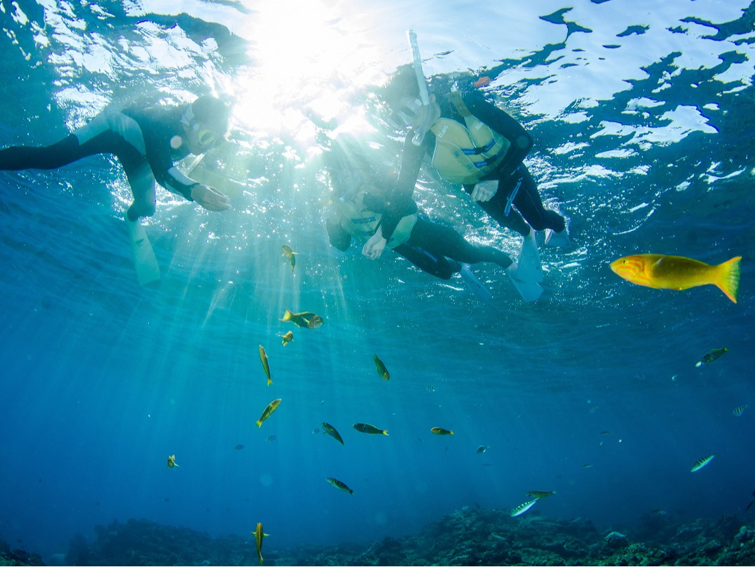 - 久米島の海を知り尽くした私たちにお任せください!! はての浜とは違った別世界の海へお連れ致します。 ダイビングポイントをスノーケル!サンゴ礁やカラフルなお魚、 透明度抜群の海を体感頂けます!!