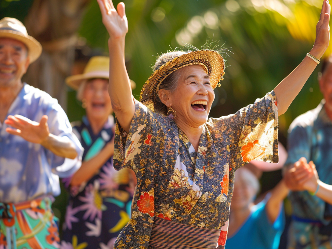 古くから武力外交を廃し、文化交流や貿易で国を栄えさせてきた琉球王朝時代の、永華と品格を描き出した重厚な「古典舞踊」。 近代に入って庶民の生活や習慣を題材にして生まれた、躍...