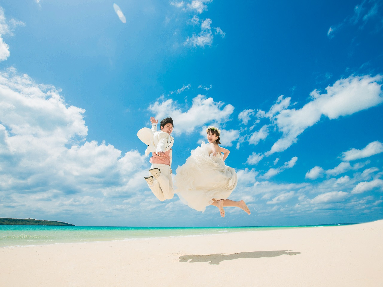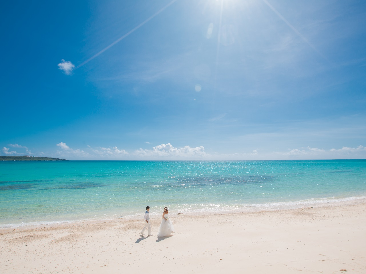 - 一度見たら忘れられない青い海と砂浜!沖縄に来たら絶対撮りたい!“非日常の美しさ”に溶け込むおふたりを撮影します。プロのヘアメイク・カメラマン・アテンドもすべてコミコミの安心プランでお任せください!