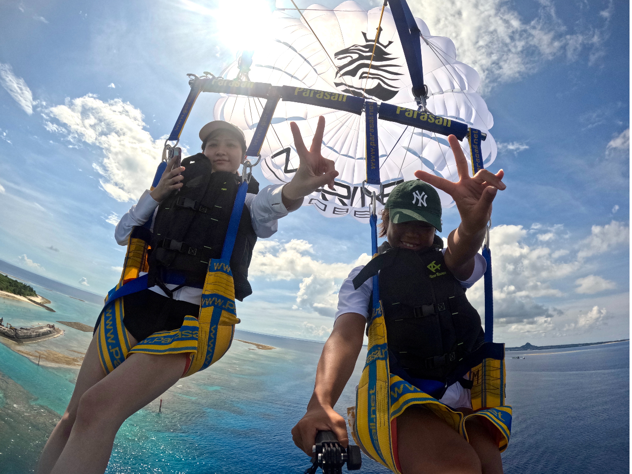 パラセーリングで沖縄・南部の空と海を大満喫♪カップル・ファミリー・女子旅に◎