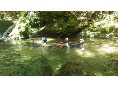 - 国内有数の景勝地”祖谷渓(いやけい)” に注ぐ、とっておきの渓流。澄み切った沢をかきわけ、滝を登ったり、天然のウォータースライダーで遊んだり、清流へジャンプしたりと、爽快でアクティブな沢遊びです。