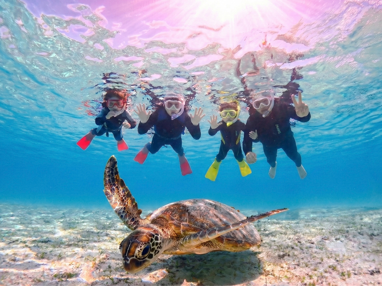 - 感動体験!ウミガメに会いに行こう!遠浅ビーチでのエントリーなのでお子様がいる家族にオススメ。5歳からご参加いただけます。