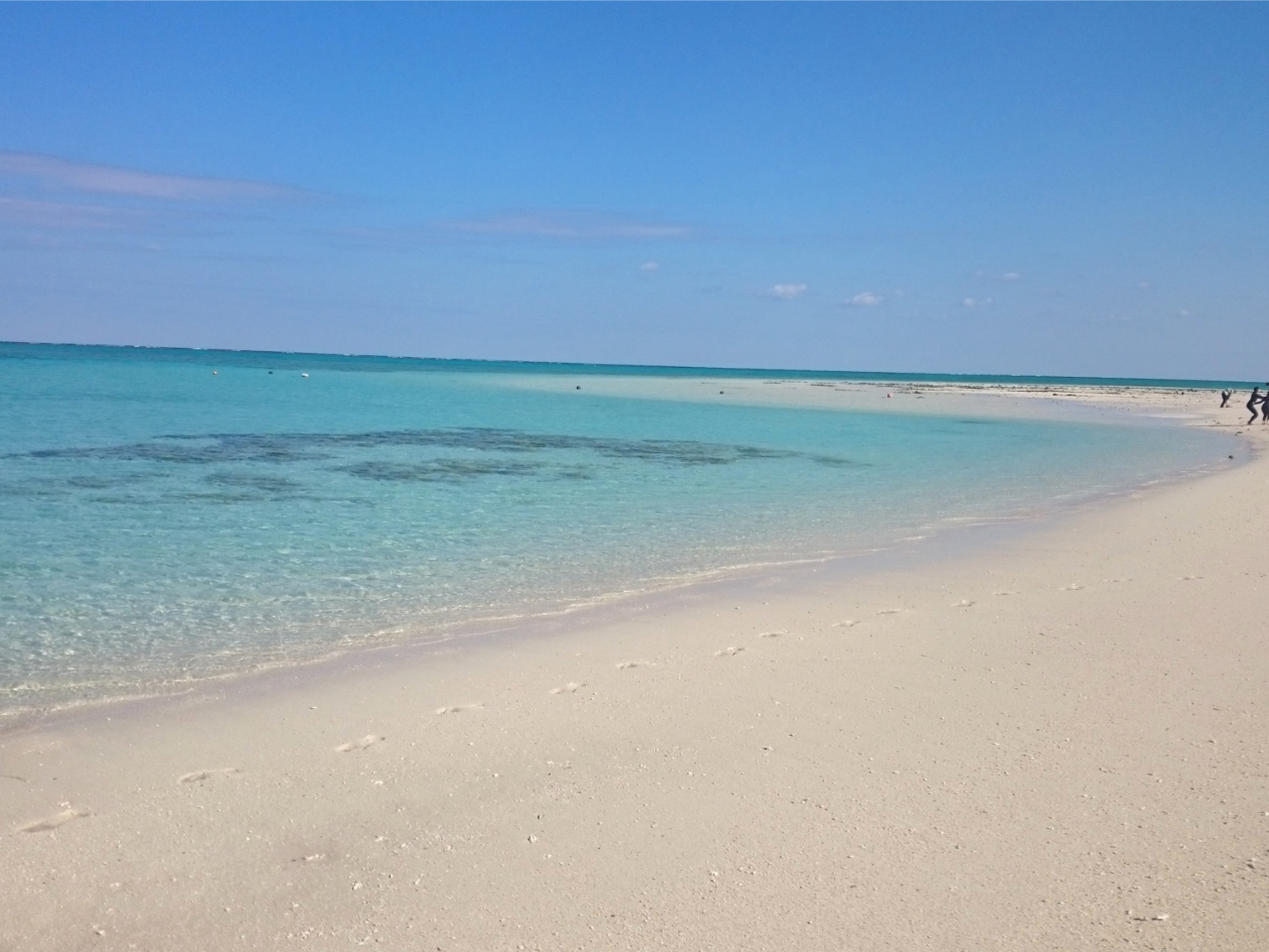 - 久米島にある東洋一の砂州、はての浜。 遊泳区域内でのシュノーケリングや、エメラルドブルーの海を眺めながらの浜散策を楽しめます。