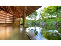 - 春は新緑、夏は深緑、秋は紅葉、冬は雪見と 四季を感じられる趣ある温泉露天風呂です。 すぐそばには池があり鯉が泳ぐ姿も間近に見られます。