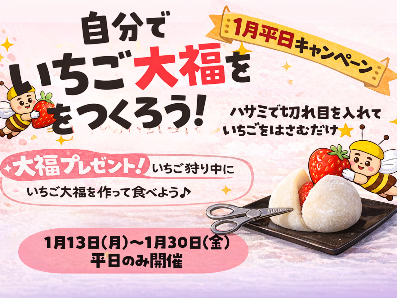 1月【高設栽培/30分間のいちご狩り】SweetでJuicyないちご食べ放題♪
