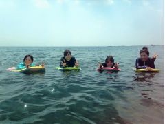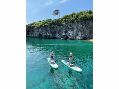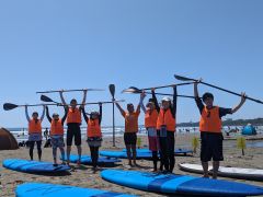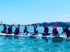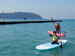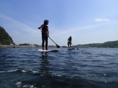 - ライフジャケット着用なので、はじめての人・泳げない人も安心です! SUPの乗り方を覚えたら、 みんなで海上散歩に出かけよう! 波の無い静かな海で楽しみます♪