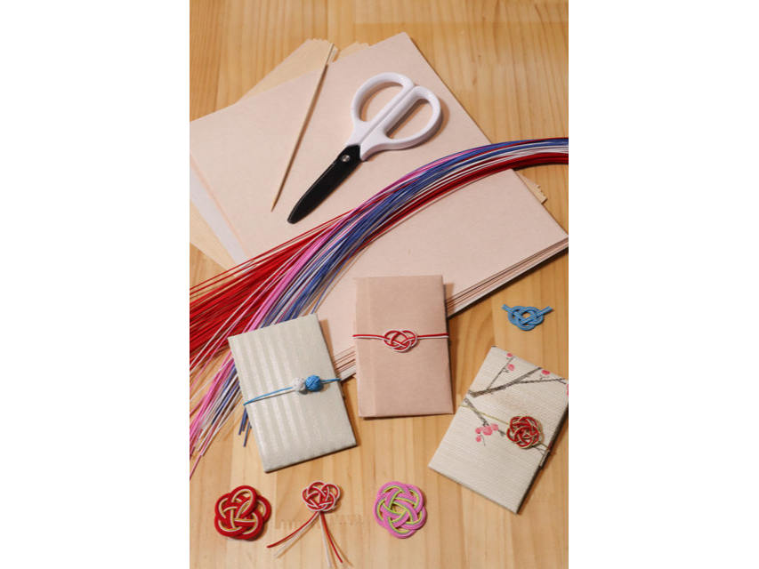 - ご祝儀袋や贈答品などに用いられる飾り紐「水引」。 本講座では、基本のあわじ結び、梅結びを覚えて、お好きな和紙と組み合わせてオリジナルのぽち袋を作ります。