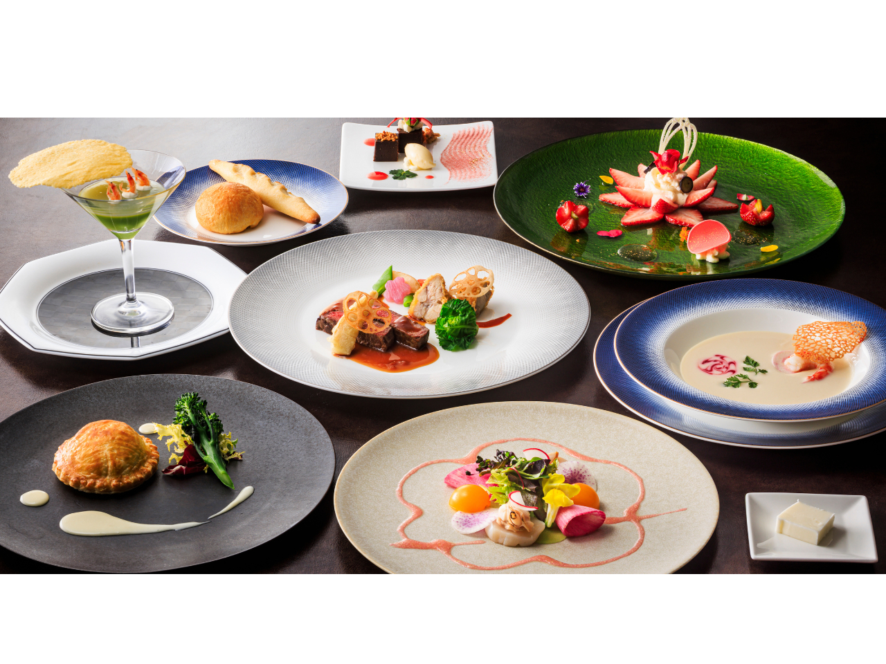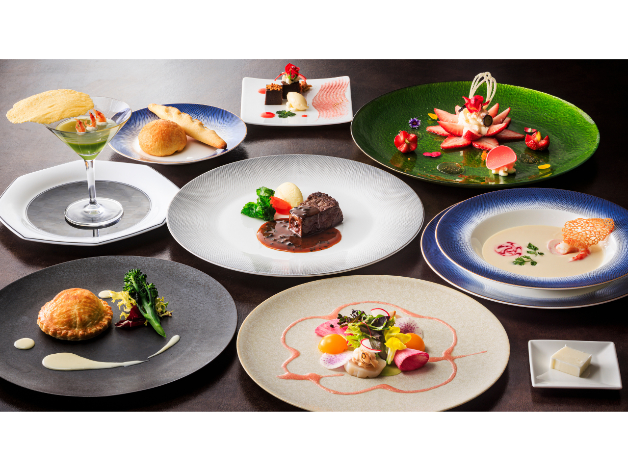 - Atelier Kitchen(オープンキッチン)にてお選びいただいたメインを目の前でご用意いたします。温製料理、サラダ、オードブル、スープ、パン、デザートはハーフブッフェよりご自由にお取りください。