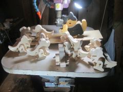- 工房が有る わしのす山の風景を組み木にして見ました。 尖がった山がわしのす山でその上が雲形の親鷲で、その上がパタパタ 飛ぶ練習をしている、子鷲です。写真右側 わしのす山工房へ遊びに来てください。